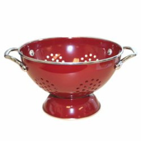 This 3.0 Qt colander is made of enamel on steel with stainless steel rim and chrome plated handles. Great for straining or simply displaying fruit on the table, this colander will catch attentions to your kitchen.
