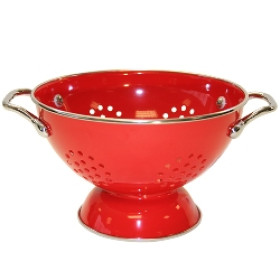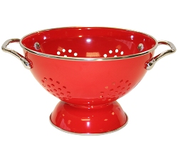 This 7.0 Qt colander is made of enamel on steel with stainless steel rim and chrome plated handles. Great for straining or simply displaying fruit on the table, this colander will catch attentions to your kitchen.