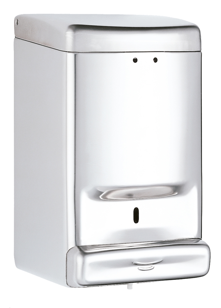 • Liquid soap dispenser, wall mounted.
