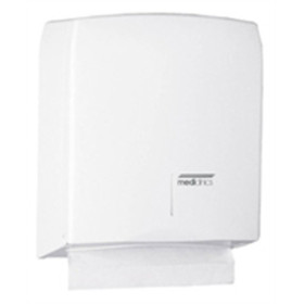 - Paper towel dispenser, surface mounted, steel white epoxy coated.