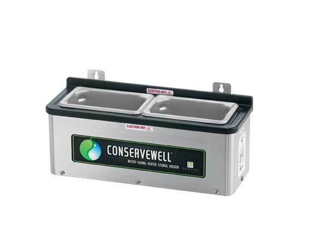 The ConserveWell™ heated utensil holder is an environmentally friendly solution that replaces a traditional dipper well perpetual-flow sink. The unit holds service utensils above 140º F, keeping them safe from bacteria growth without the use of perpetual flowing water.