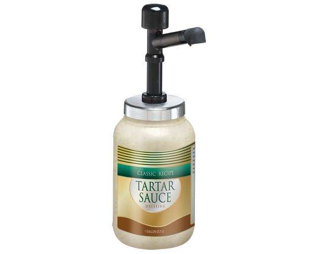 This polycarbonate condiment pump is ideal for dispensing just about any condiment or dressing, including those with larger chunks such as tartar sauce, Thousand Island dressing, some salsas and picante sauce directly from a plastic or glass gallon (3.8 L) jar with a 110mm opening.