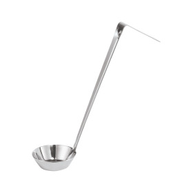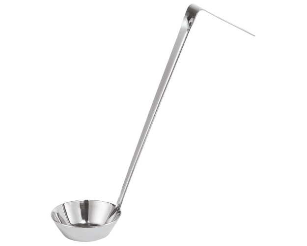 This stainless steel ladle can be used with a deep 1/9-size jar. The capacity is 1 oz (30 mL) with a 6" (15.2 cm) handle.