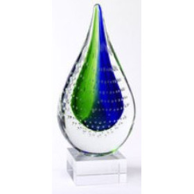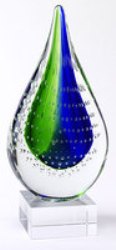 Art Glass Tear Drop Centerpiece On Base is crafted out of glass with beautiful colors to fit any modern and contemporary motifs.