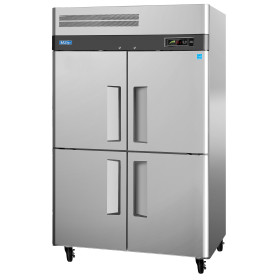 M3 Freezer, reach-in, two-section, 47 cu. ft., exterior LED digital thermometer, door open beep, self-diagnostic monitoring system, hot gas condensate system, smart fuzzy defrost, automatic fan motor delays, door pressure release, LED interior lighting, self-cleaning condenser device, (4) half hinged solid doors with recessed handle & locks, (6) PE coated wire shelves, stainless steel front & sides, aluminum interior with stainless steel floor, 4" swivel casters, top mount self-contained compressor, 3/4 HP, 115v/60/1, 10.5 amps, NEMA 5-15P, NSF 7, cETLus