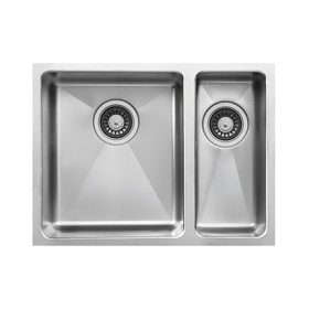 Ukinox's RS390.70.30 sink seamlessly blends superior functionality with a beautifully modern design. In addition to our European-style, high-polished finish, Ukinox classic double sinks are made with a three-piece construction process providing you with a beautiful, yet sturdy sink that will be the highlight of your kitchen for years. The Ukinox sink pairs a formal rectangular-shaped bowl with one of our many smaller bowls to create a standard sized double bowl undermount sink that meets your needs. With an oversized main sink and a task-specific sidekick, these standard and extra deep sinks are the mainstay in most glamorous kitchens. The large bowl is on the left hand side.