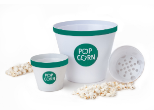 Each bucket also features a removable kernel separator that drops the unpopped kernels into the bottom of the bucket where they don't interfere with your popcorn enjoyment!