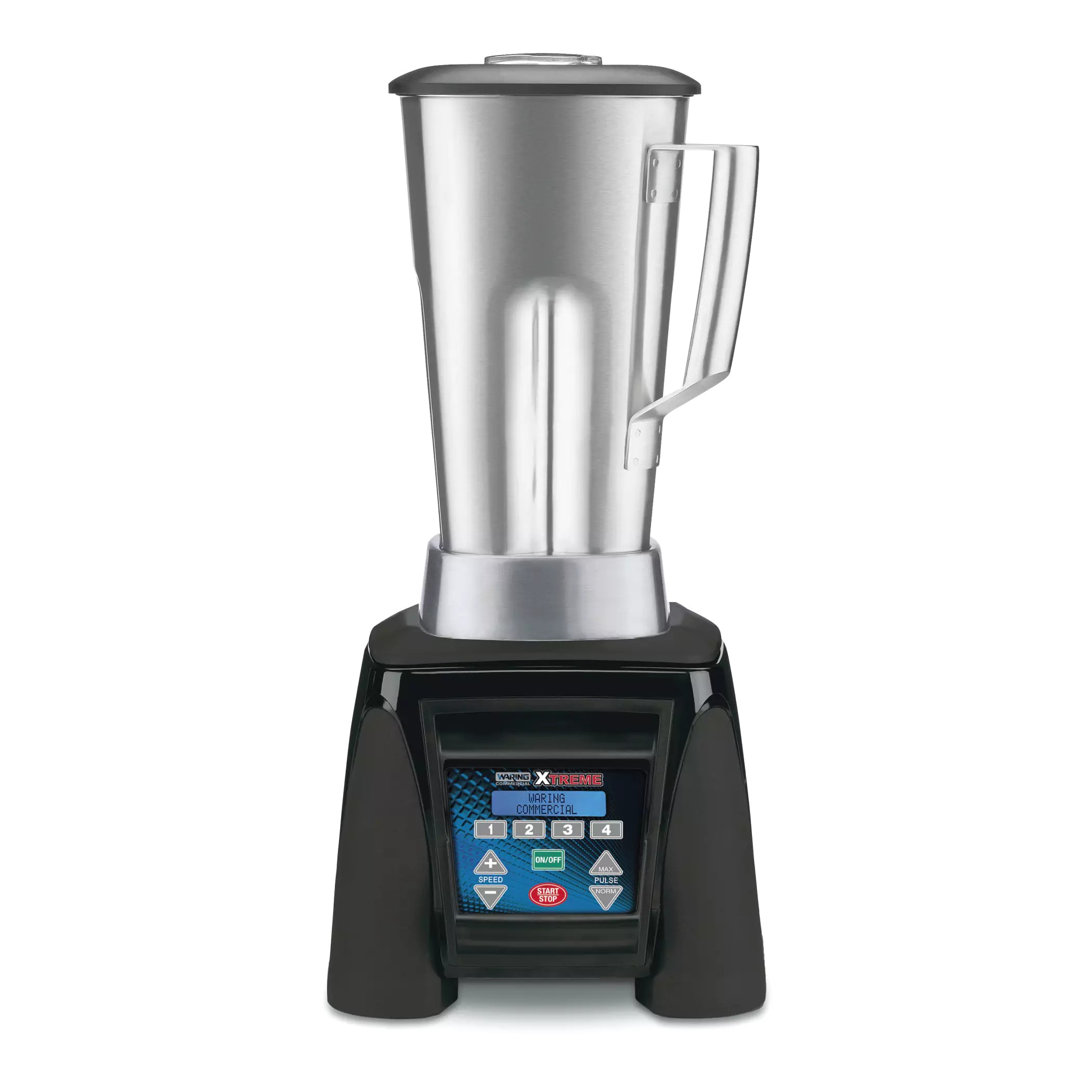 Get smooth, consistent results every time with the Waring MX1300XTS. This heavy-duty, 3.5 HP blender teams up with The Raptor® blade and jar assembly for maximum power and efficiency. The rock-solid base features an easy-to-clean, electronic-membrane keypad with blue backlit LCD screen and four programmable beverage stations. Perfect for a busy bar, health facility, school or coffee shop.