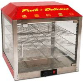 The adjustable thermostat and circulating fan make this unit ideal for any application. The three adjustable chrome-plated racks can be placed flat or sloped and are removable for easy cleaning. Attractive Graphics help to create impulse sales. Stainless Steel and Aluminum construction provides durability and ease of cleaning.